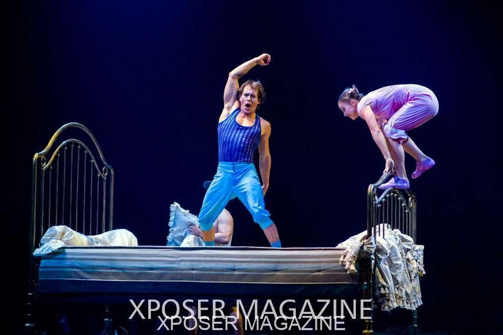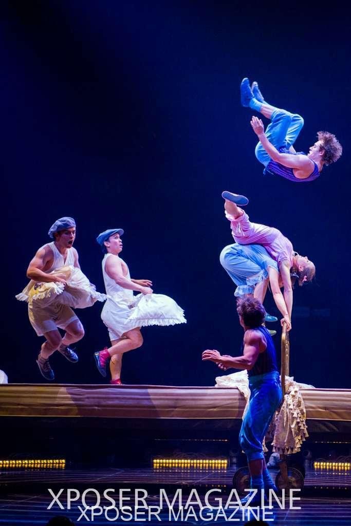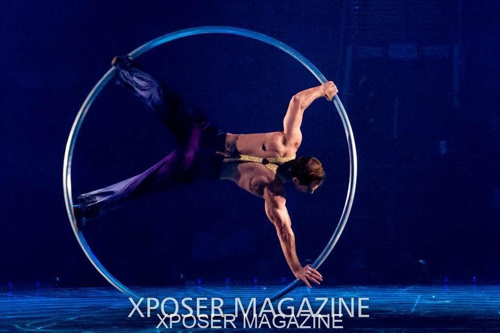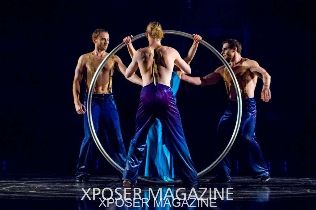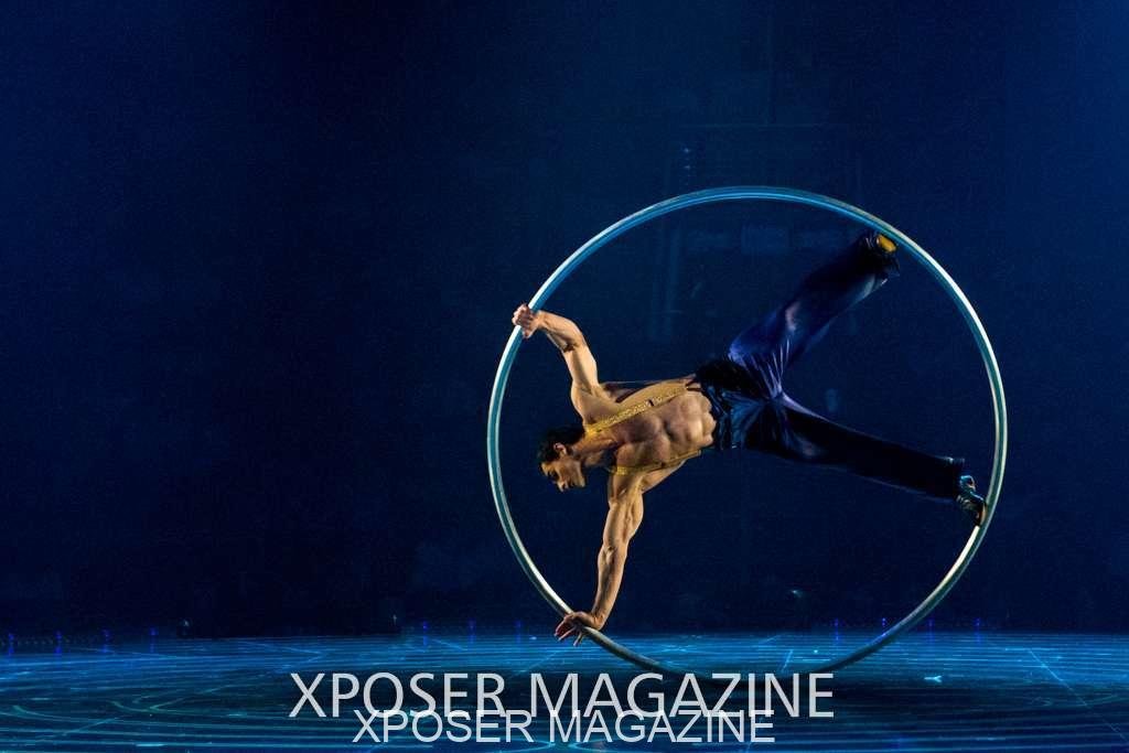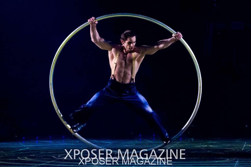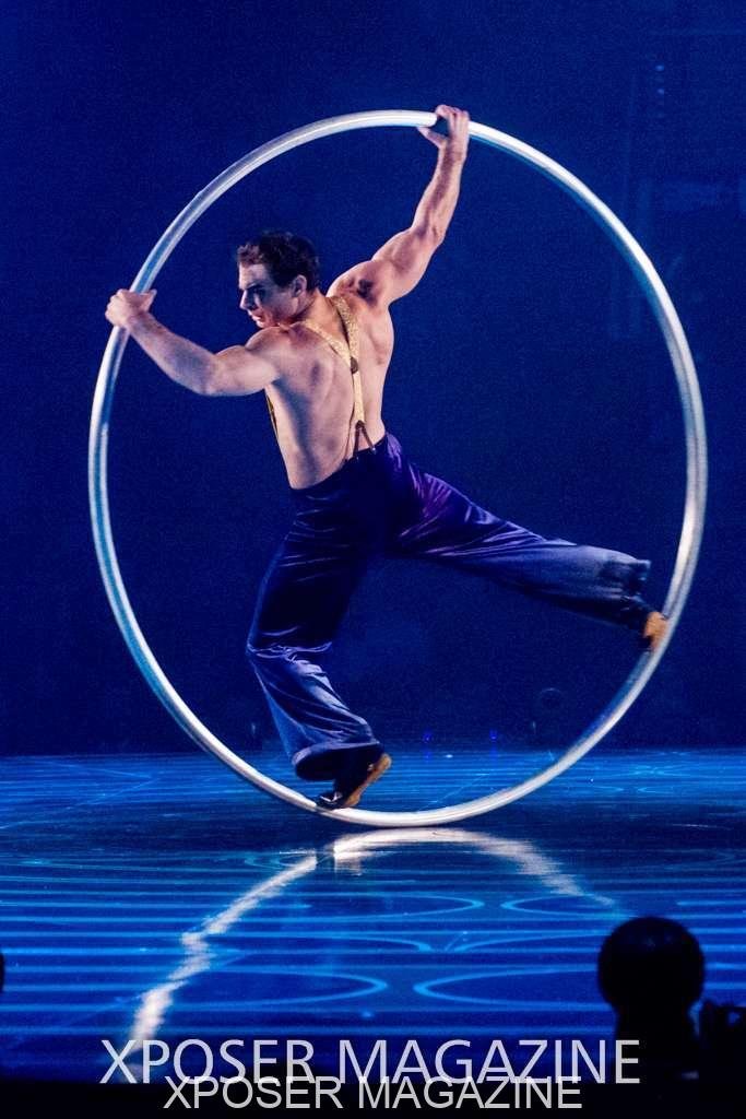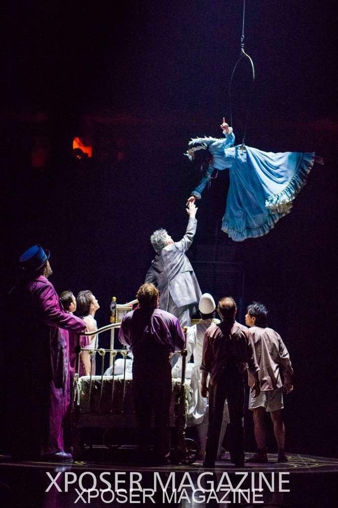 The angels float back in and hover above the clowns’ bed preparing him for the next round of his journey; this is when the Cyr Wheels enter the scene. Performing amazing acrobatic maneuvers, the cyr wheel artists give a great fluidity to the movement on stage.