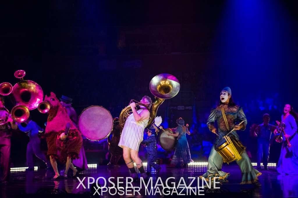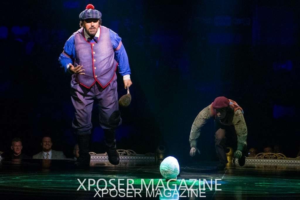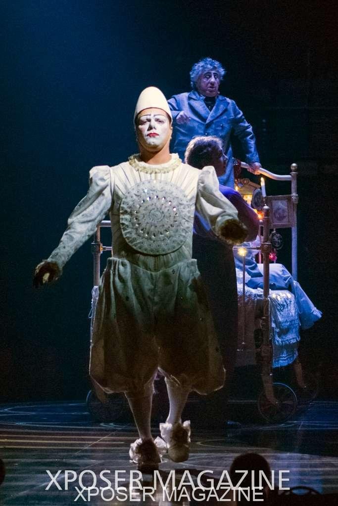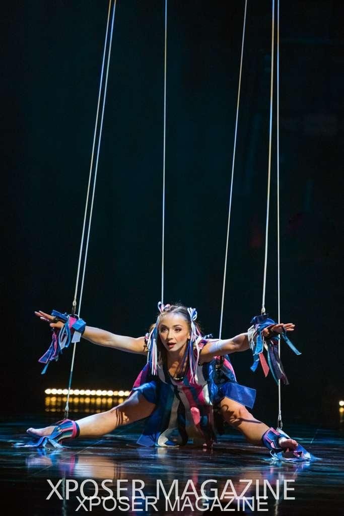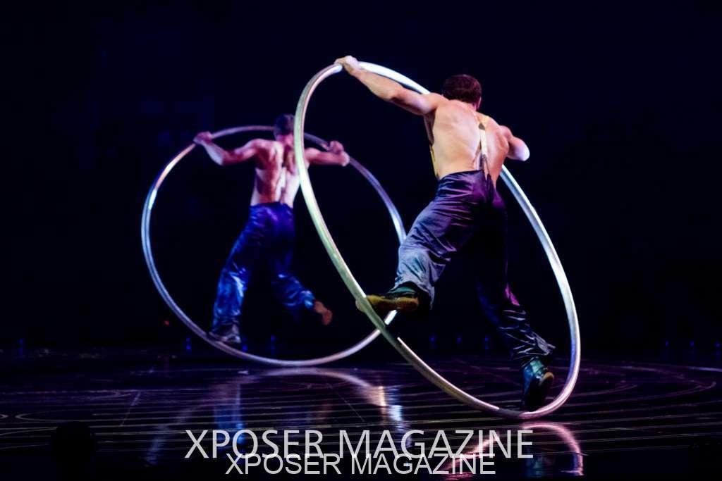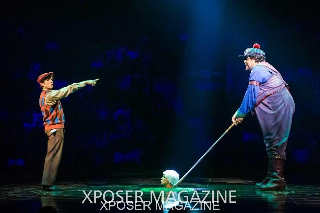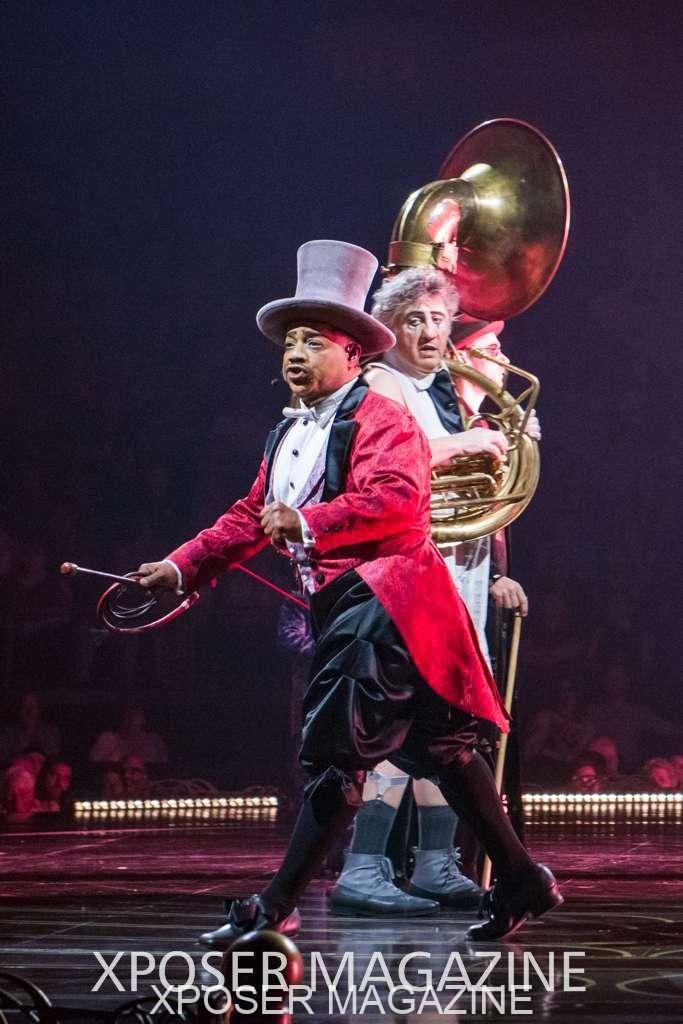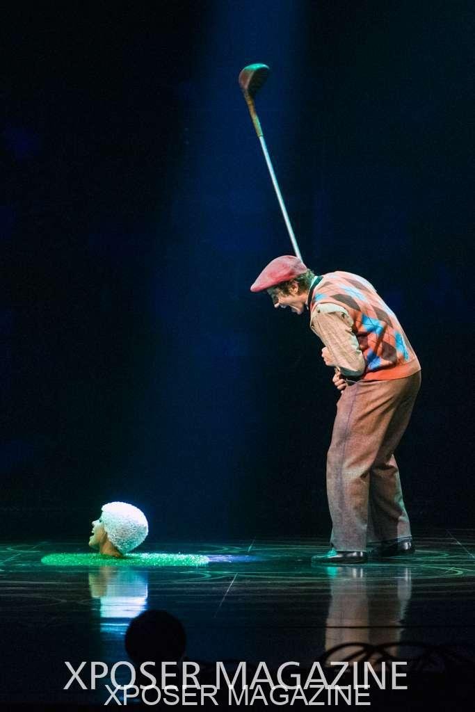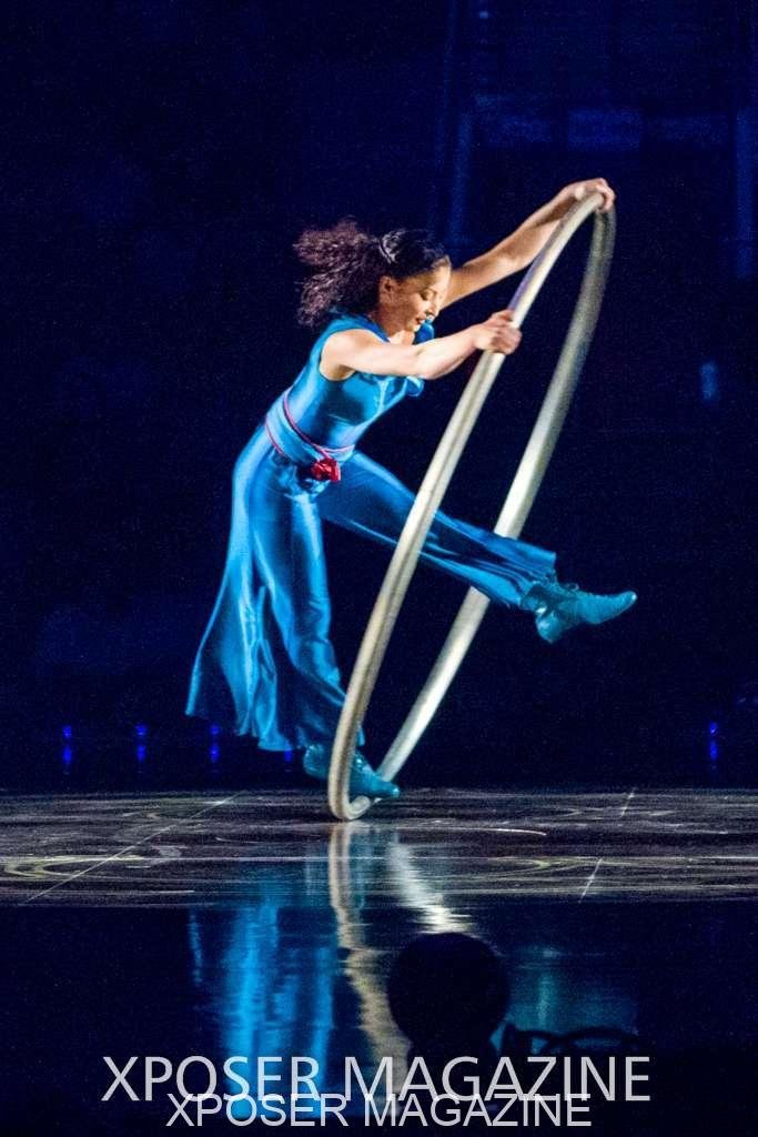 The angels float back in and hover above the clowns’ bed preparing him for the next round of his journey; this is when the Cyr Wheels enter the scene. Performing amazing acrobatic maneuvers, the cyr wheel artists give a great fluidity to the movement on stage.