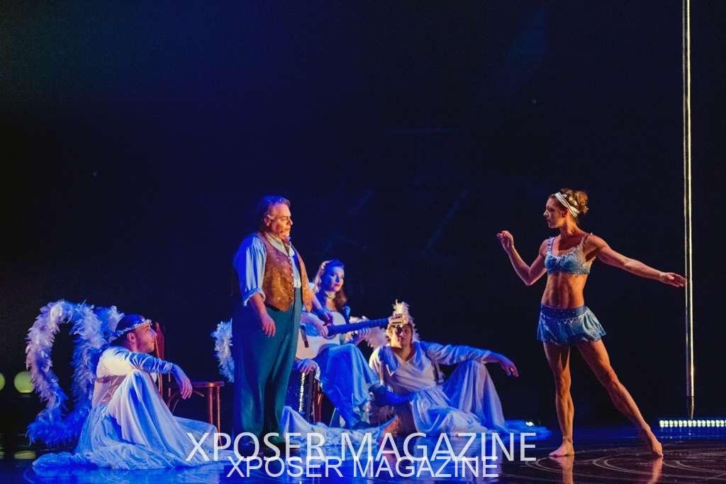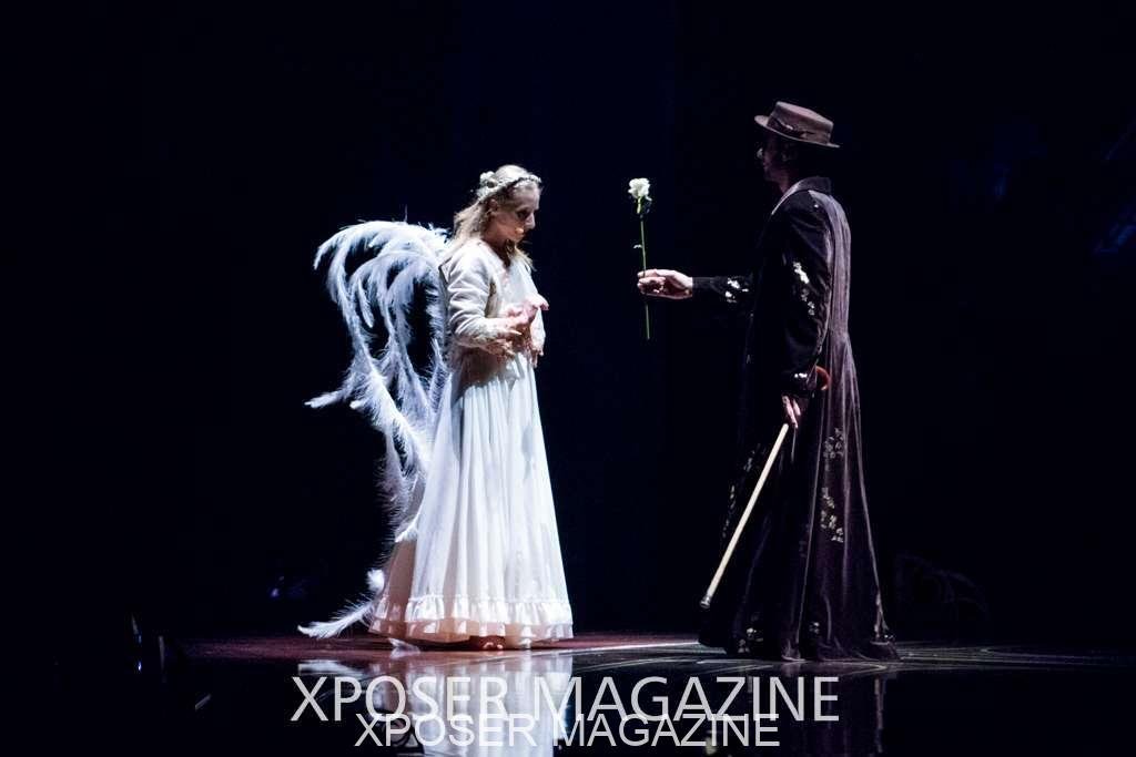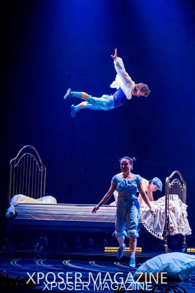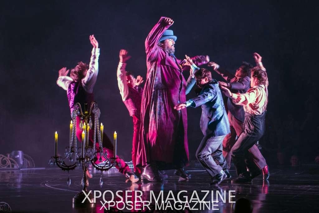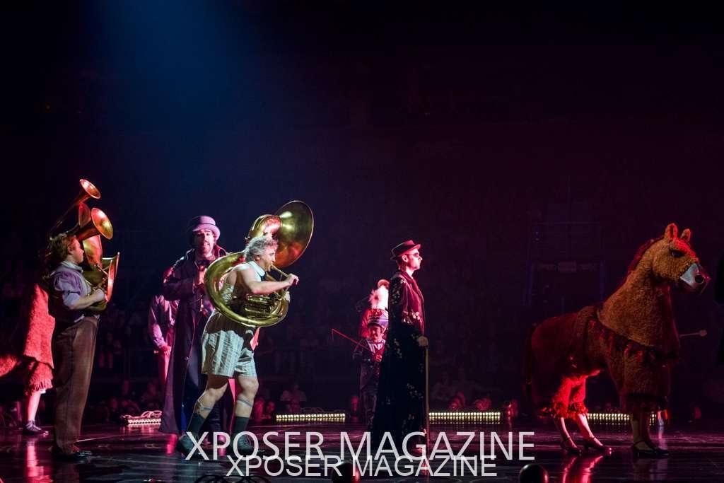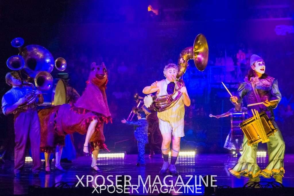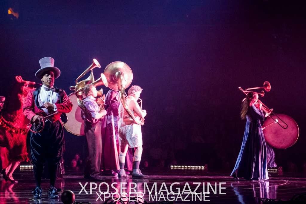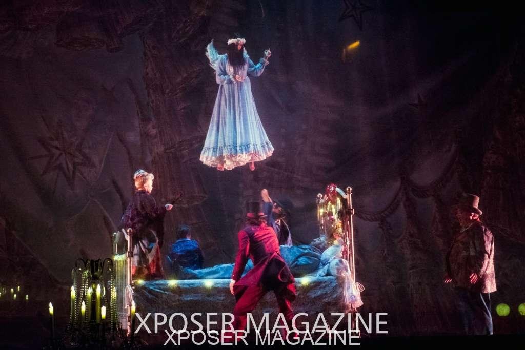 The angels float back in and hover above the clowns’ bed preparing him for the next round of his journey; this is when the Cyr Wheels enter the scene. Performing amazing acrobatic maneuvers, the cyr wheel artists give a great fluidity to the movement on stage.