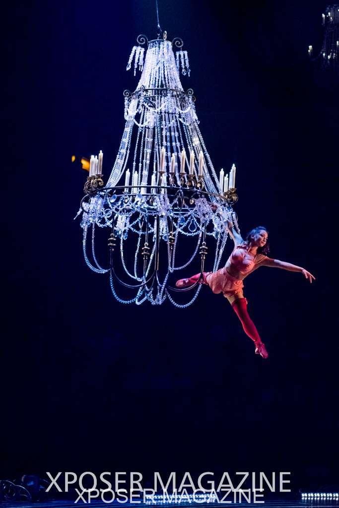 Starting with a behind the scenes walk through, you begin to get a little peek of just how extravagant this stage show will be. Walking past the decorative curtains through to the smaller side of the two back stages, we watched the stage workers filling large balloons with helium, for an act we will see later on in the evening. Just a small bit of wardrobe lingered around like angel wings and such, I was mostly entranced by the glimpse of the chandelier I could see hanging on stage with a performer practicing her acrobatics in and around the outside.