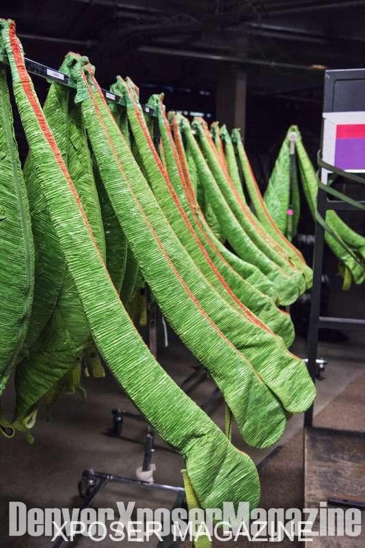 As we are walking and touring the behind the scenes, we venture to where the performers are practicing their trapeze acts. Such amazing talent goes into what you see when you watch them on stage. The performers travel with personal trainers, their own personal gym and hire massage therapists in each city to keep them at their peak performance level. Such dedication, by not only the dancers, but the behind the scenes crew as well, shows their true passion for the arts. With a total of 50 performers representing 21 countries on stage, there are at least double that behind the scenes. Workers setting up the rigging structures, seamstresses doing repairs on costumes between shows and instructors leading Pilates classes for the performers.